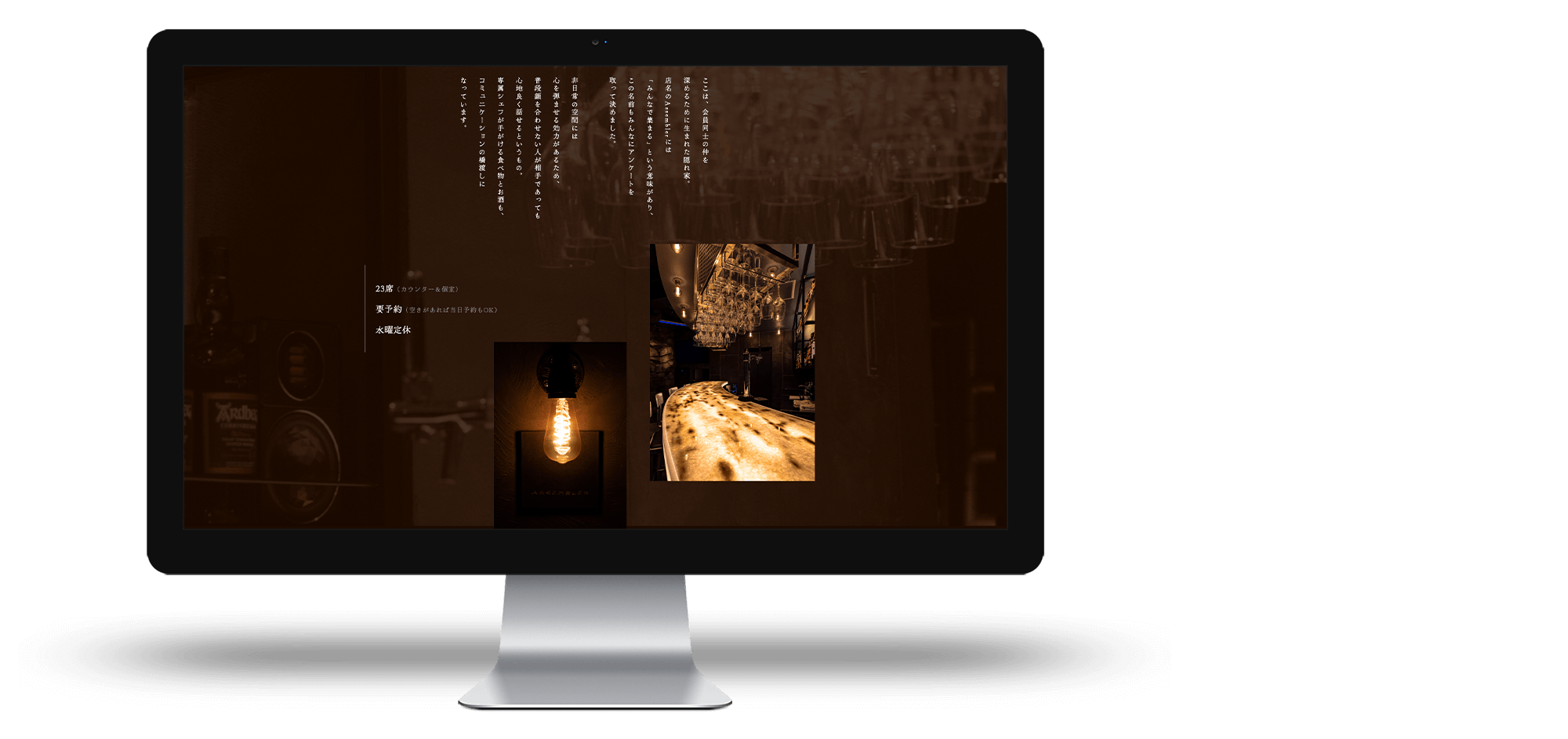 ・社員専用バーレストランをオープンしたものの、情報発信が十分にできていなかった ・採用ツールとしても機能するLPを作り、採用時のカルチャーフィットに役立てたい ・隠れ家のようなレストランに合うデザインでありつつ、見ている人が楽しめるギミックを盛り込みたい