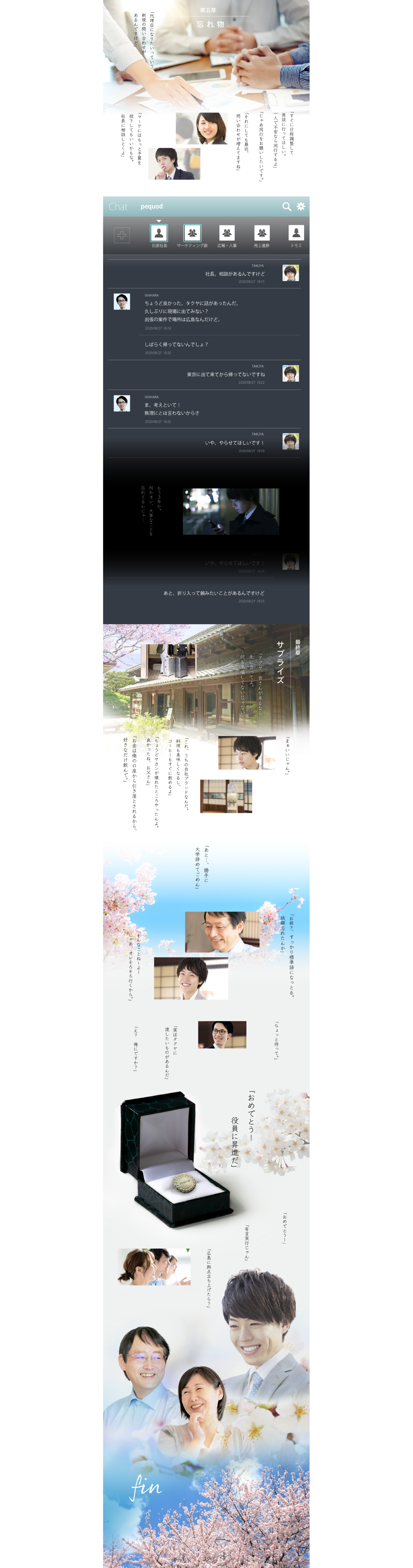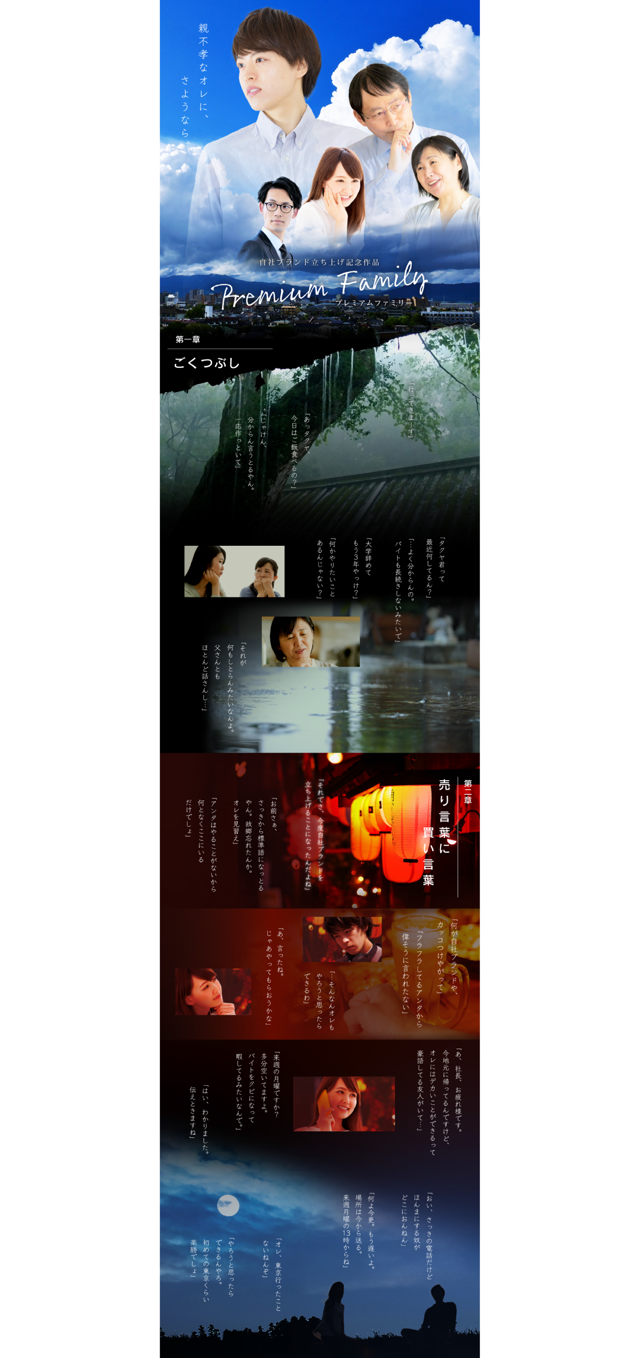 後半、舞台は変わって東京。タクヤは順調にキャリアを重ねることで、自分に自信を持てるように。成長をしてやっと「今の自分がいるのは両親のおかげだ」と気付きます。ラストは実家を訪れて親へプレゼントをし、ずっと言えなかった謝罪を伝える―。タクヤも両親も晴れ晴れとした笑顔で物語は幕を閉じます。このように後半では、キャリアも人間力も成長した主人公を描くことで、同時に「pequodに入社後の未来」を表現。企業の魅力をシナリオに溶け込ませて、求職者へ訴求をしました。